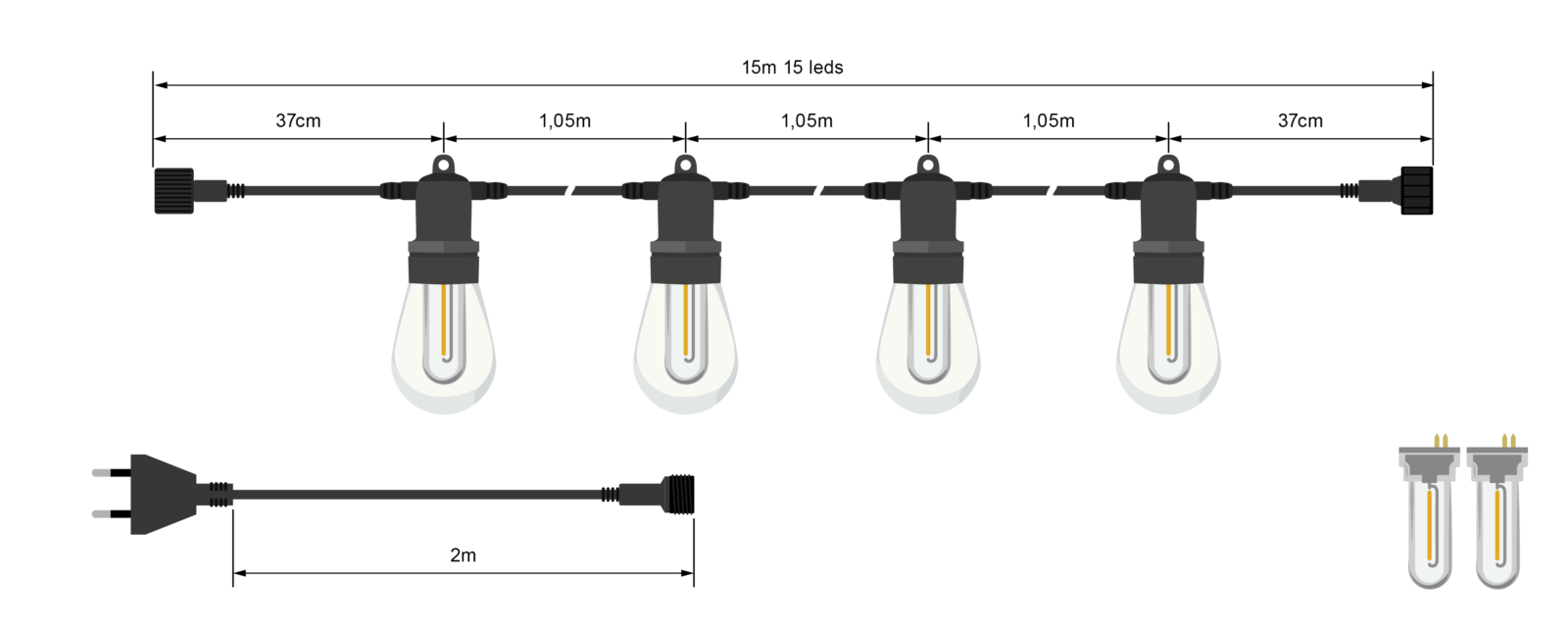 - Długość przewodu zasilającego ( od wtyczki do pierwszej żarówki): 90 cm