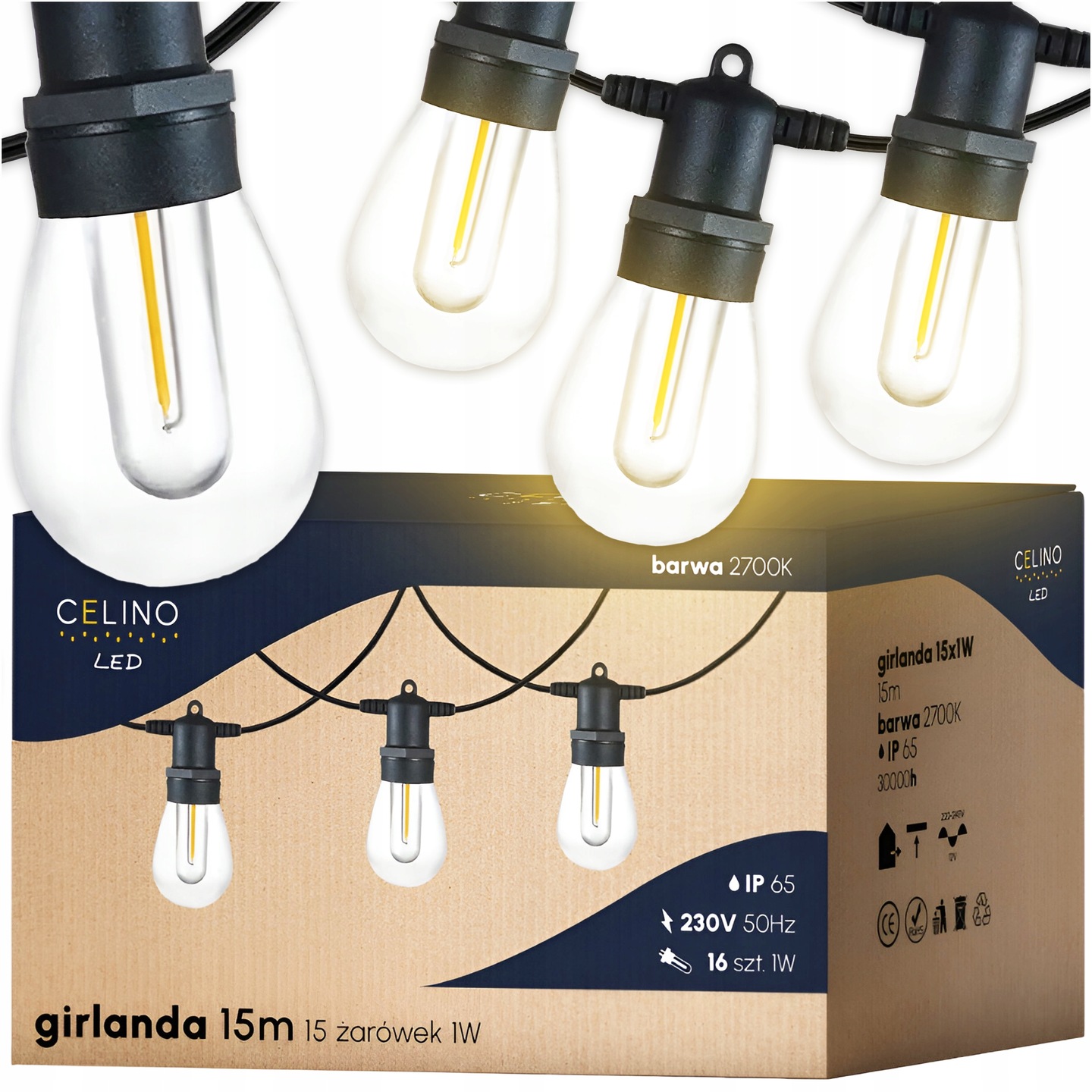 - Ilość żarówek: 15 żarówek LED + 1 zapasowe źródło światła