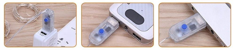 Lampki zasilane są niskim napięciem z zasilacza którym ładujesz również telefon lub jeśli nie masz możliwości podpięcia do gniazdka to kurtynę można zasilić nawet z PowerBank’a!!