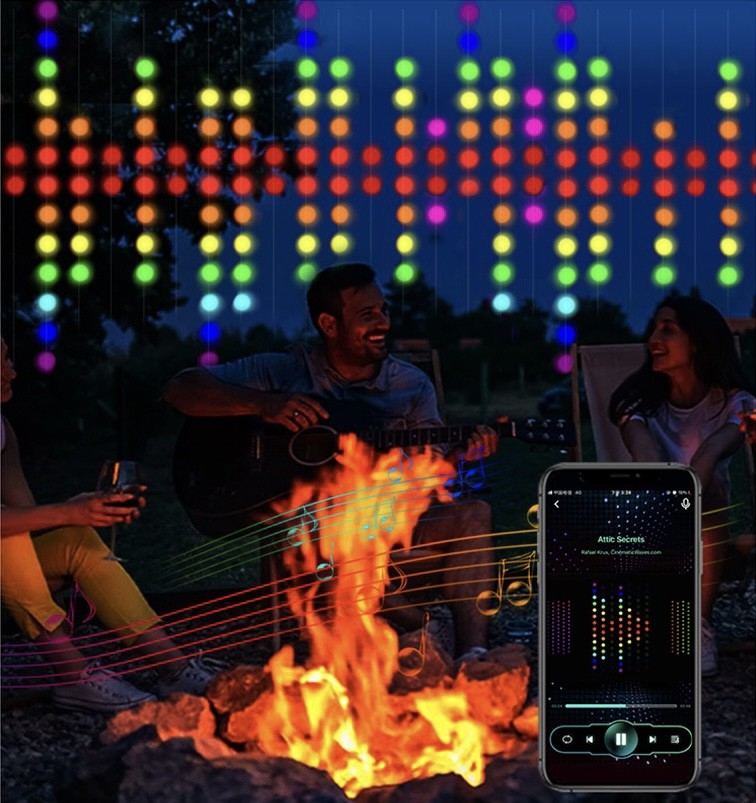 Łatwe sterowanie z pilota lub aplikacji bluetooth umożliwa włączenie kurtyny na odległość oraz sterowanie oświetleniem.