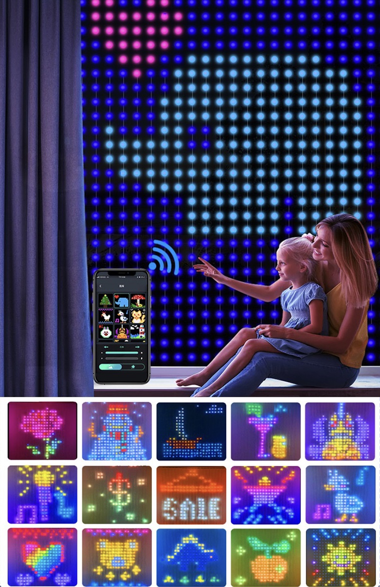Łatwe sterowanie z pilota lub aplikacji bluetooth umożliwa włączenie kurtyny na odległość oraz sterowanie oświetleniem.