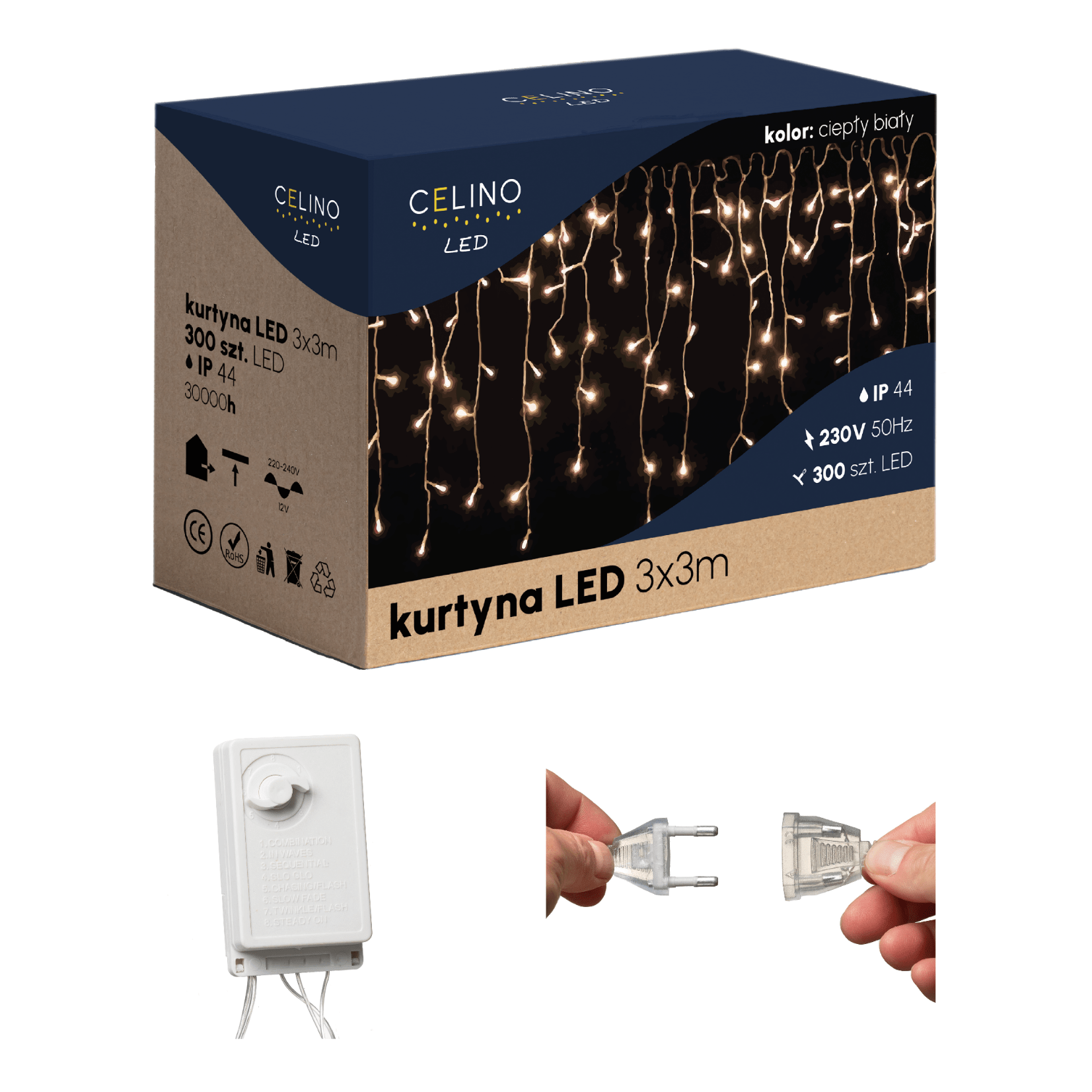 ⭐️ Kurtyna świetlna 3x3m do stosowania wewnątrz jak i na zewnątrz budynków 300LED