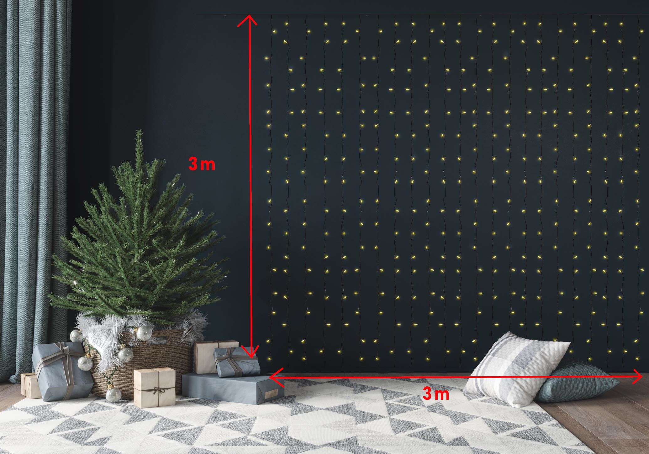 ✔ Nasza kurtyna świetlna 3×3 metr to doskonały wybór dla każdego, kto chce wprowadzić do swojego domu trochę magii świąt Bożego Narodzenia.