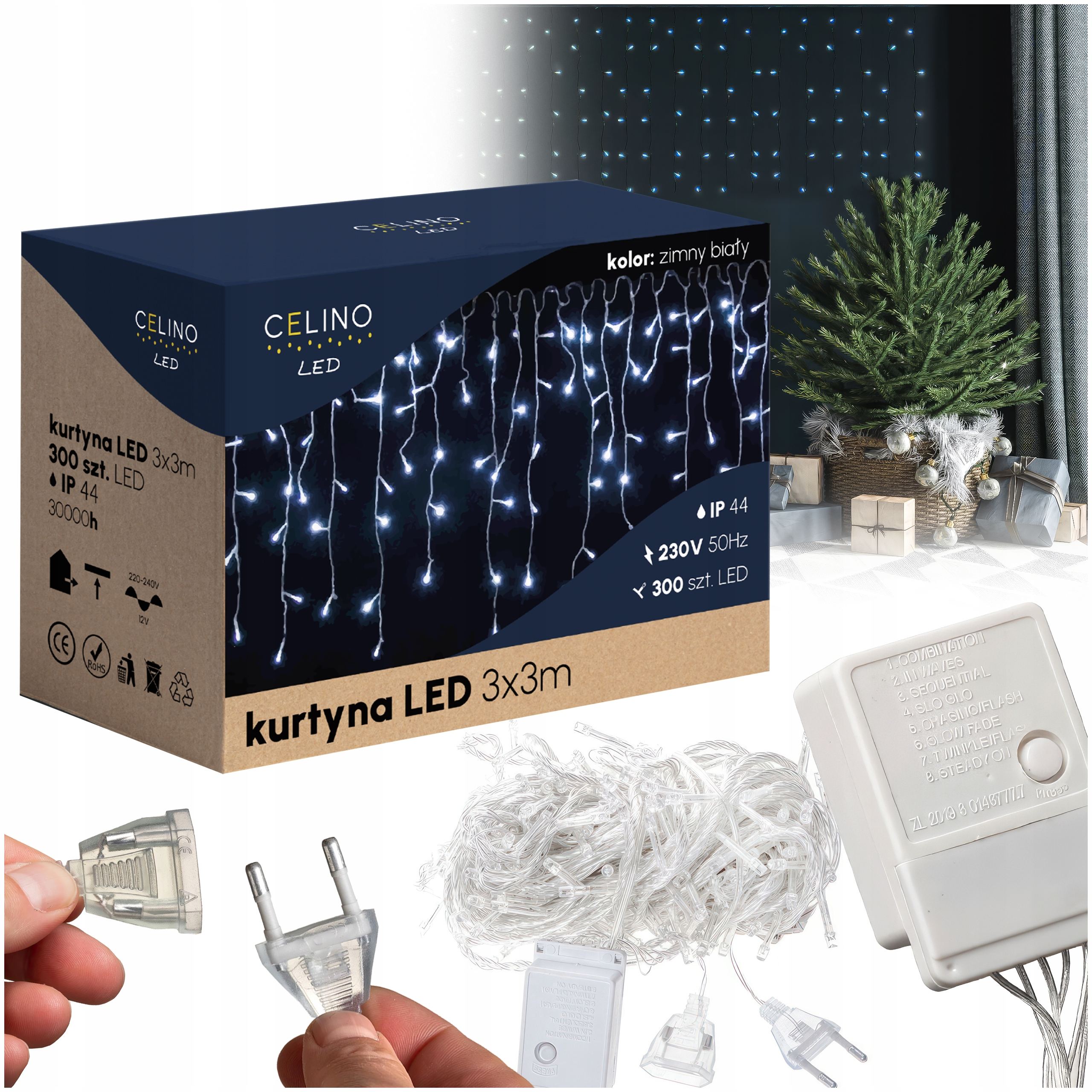⭐️ Kurtyna świetlna 3x3m do stosowania wewnątrz jak i na zewnątrz budynków 300LED