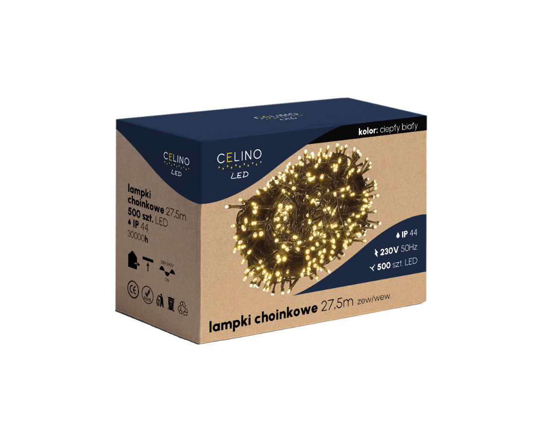 LAMPKI CHOINKOWE ZEWNĘTRZNE 500LED 27,5m CIEPŁY BIAŁY
