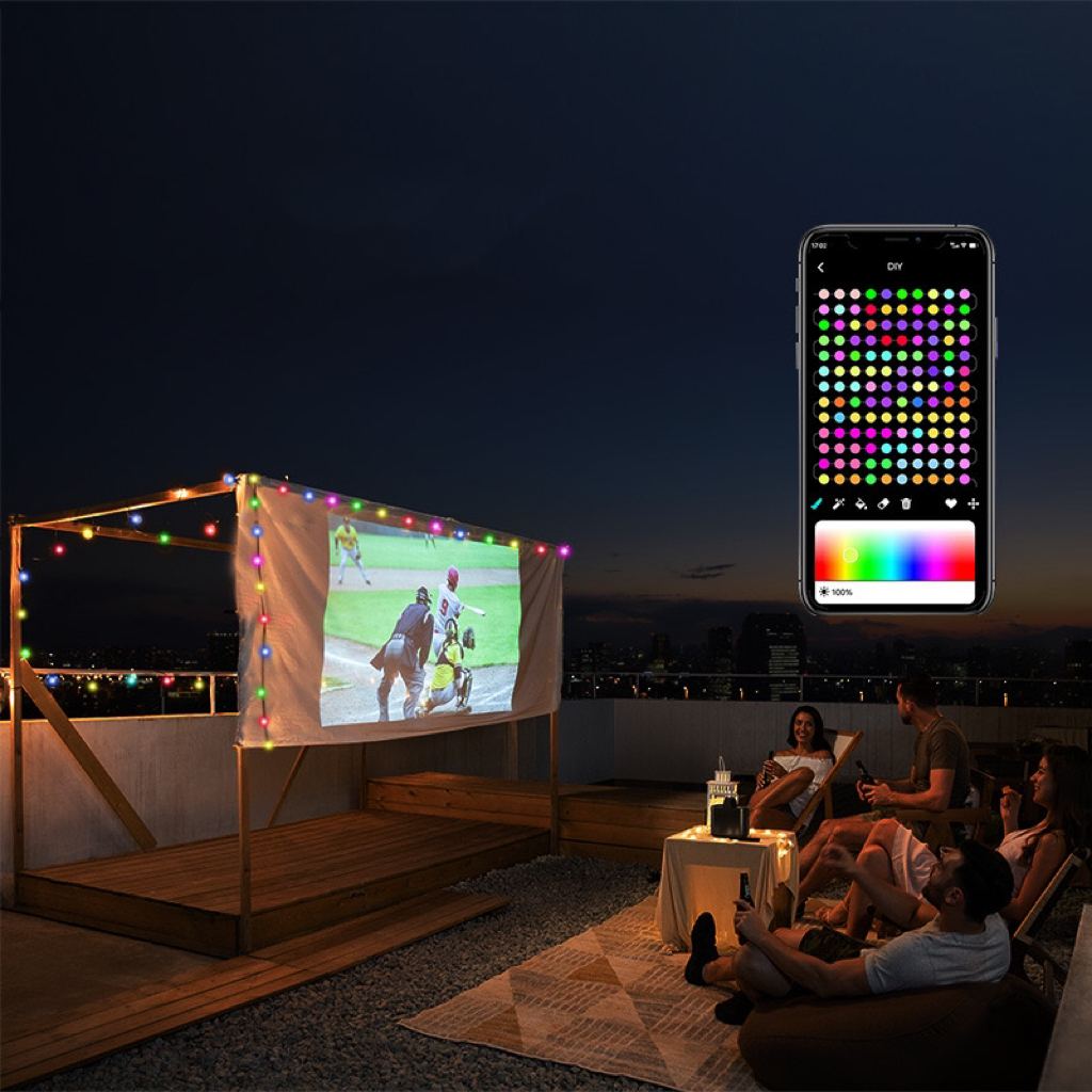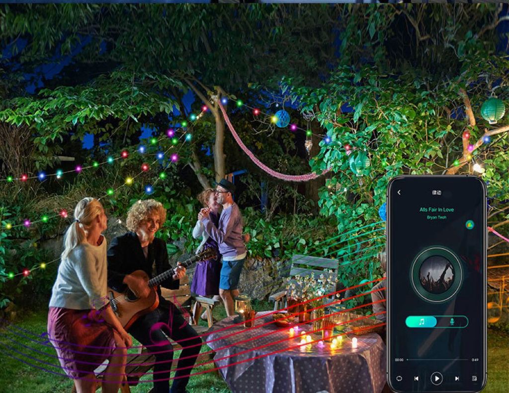 Dzięki możliwości sterowania z aplikacji, dopasujesz oświetlenie do każdej okazji – od romantycznego, stałego blasku, po dynamiczne rozbłyski.